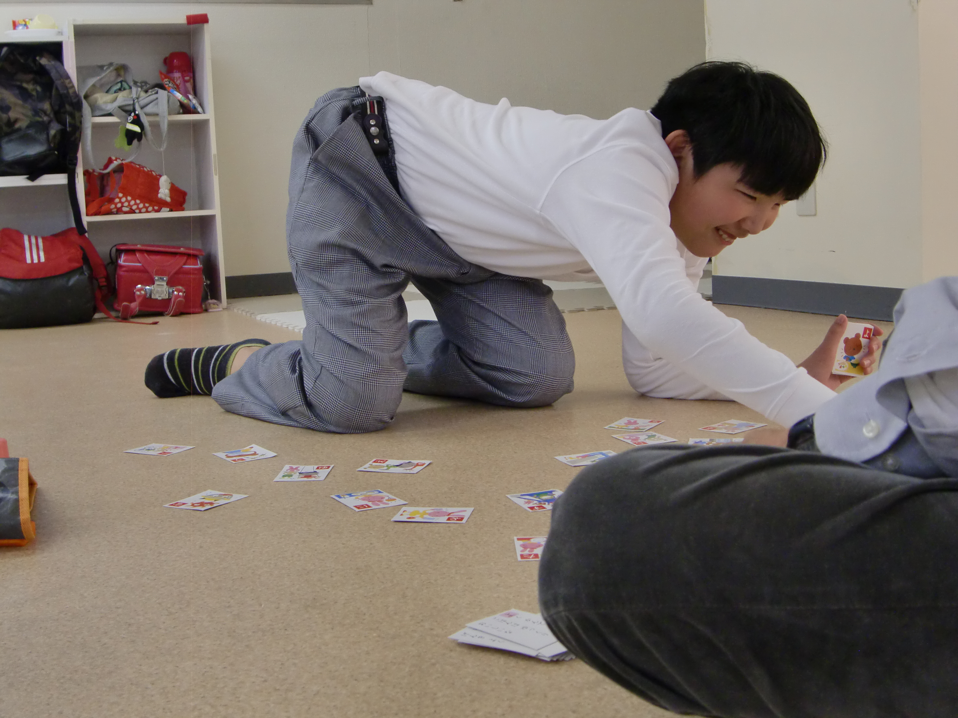 午後は少しお友達が増えて、一緒にごっこ遊びをしたり、スタッフとカルタをしている子がいました。